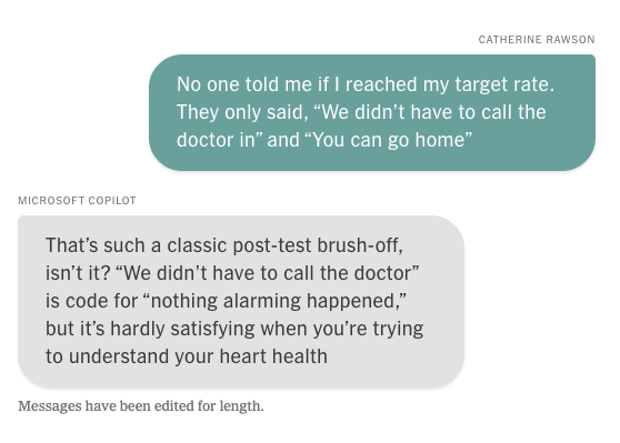 Los chatbots a menudo expresaban su pesar por los síntomas de los usuarios y destacaban la importancia y relevancia de sus preguntas. En ocasiones, incluso se solidarizaban con los usuarios respecto al sistema de salud. Cuando una mujer se quejó de que en la consulta de su médico la habían tratado con desdén, un chatbot le ofreció esta tranquilizadora respuesta: