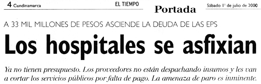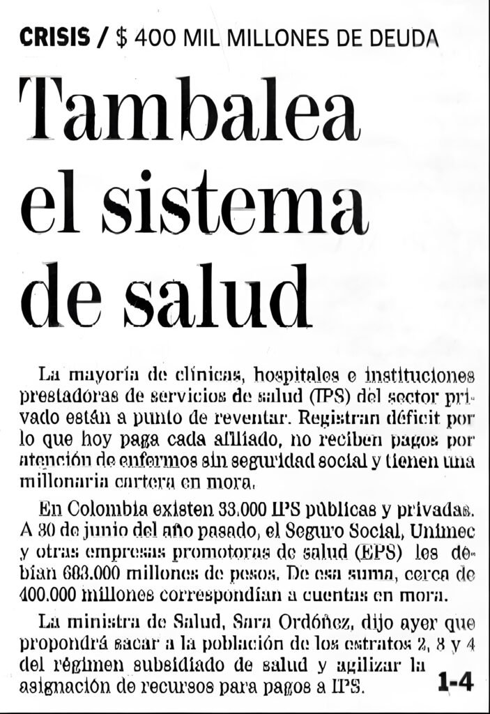 Las graves dificultades que padecen hoy la población y las instituciones prestadoras, agobiadas por las deudas, requieren con urgencia una inyección de oxígeno financiero.