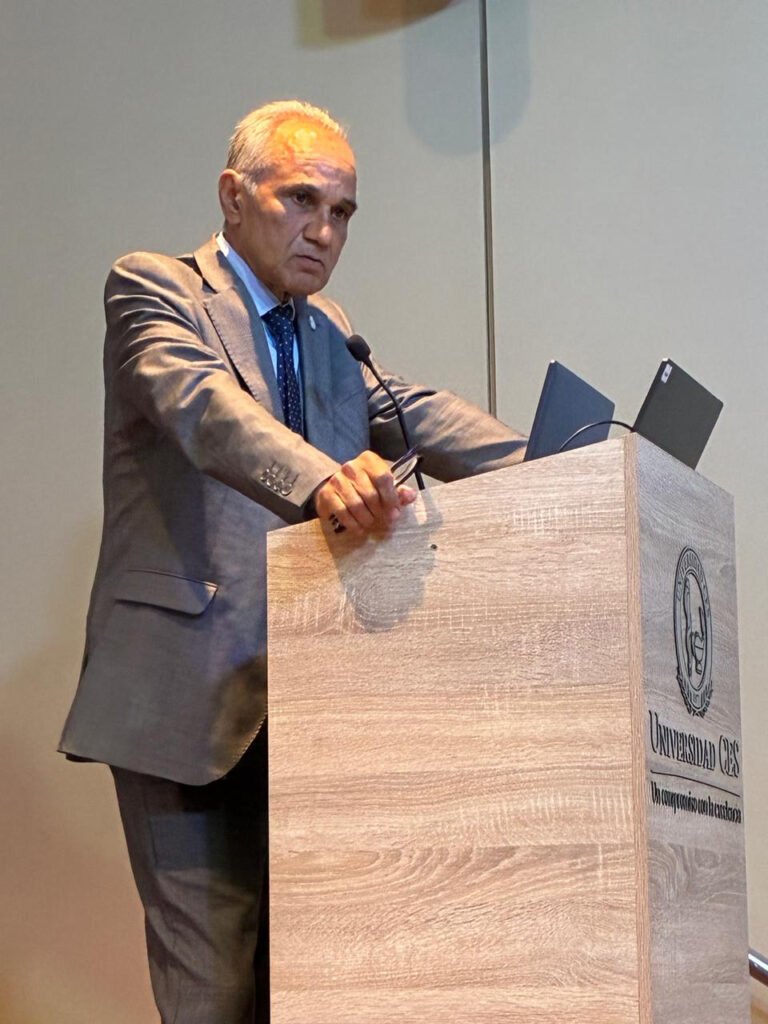 El acto continuó con las palabras del doctor Stevenson Marulanda Plata, fundador y presidente del Colegio Médico Colombiano (CMC), una agremiación que ha fortalecido la voz de los médicos en Colombia. Marulanda expresó su gratitud por el espacio brindado por la Universidad CES y recordó la importancia histórica del Día Panamericano del Médico, que se celebra en honor a un hito científico latinoamericano: el descubrimiento del mosquito transmisor de la fiebre amarilla por el médico cubano Carlos Finlay.